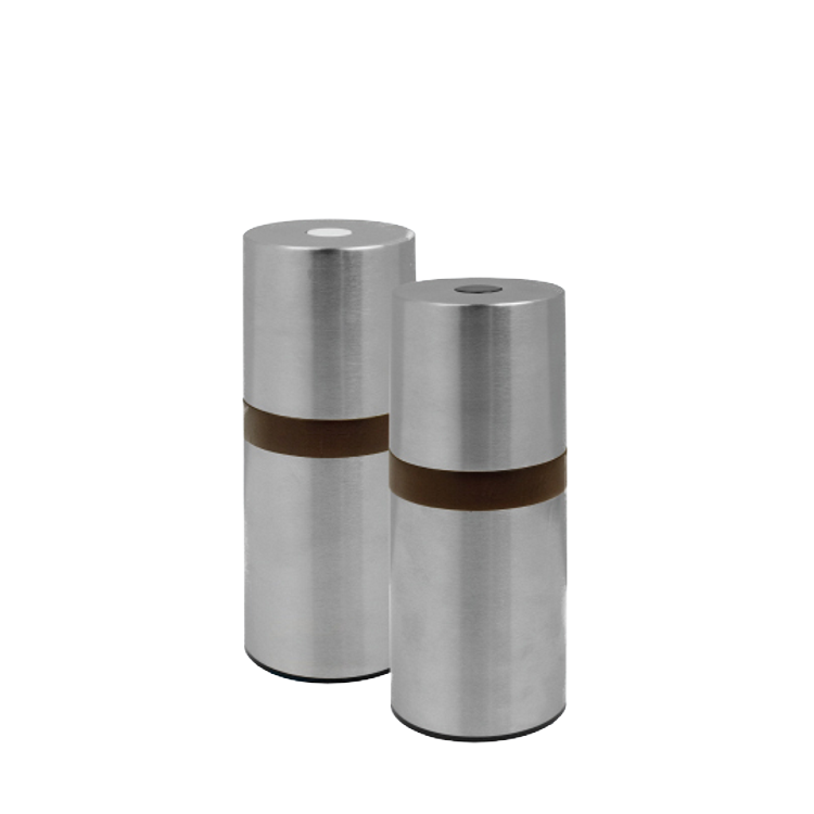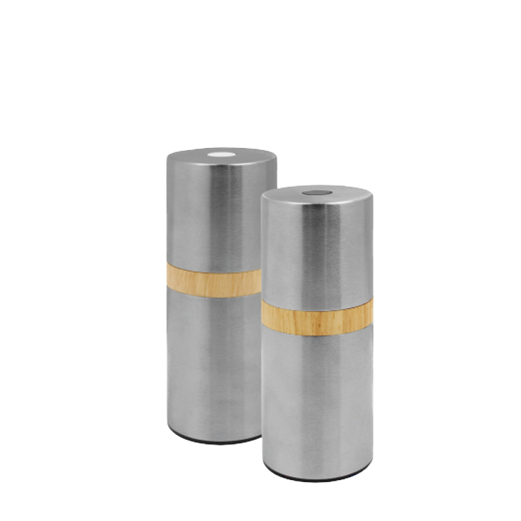 11.5cm tall SS cylindrical Peppermill and Salt Mill Set with wood ring