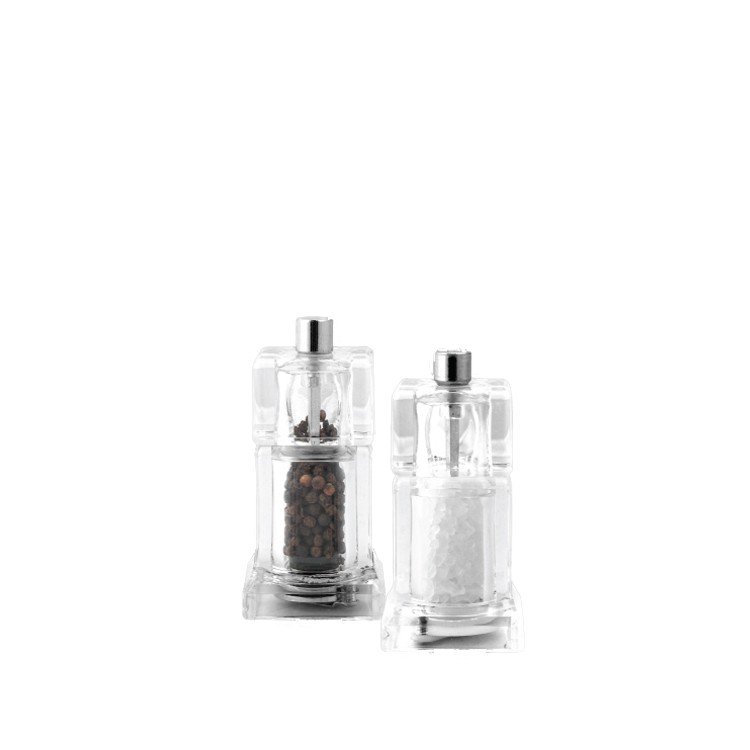 12cm/13.5cm/15cm tall square acrylic peppermill & salt mill set