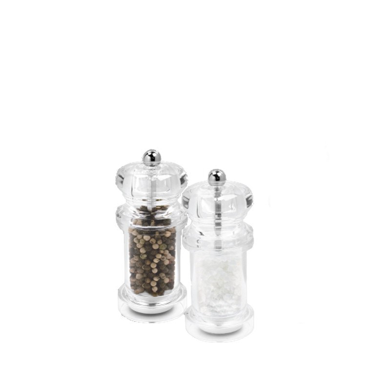 12cm/14cm tall acrylic top and body peppermill and salt mill/shaker set