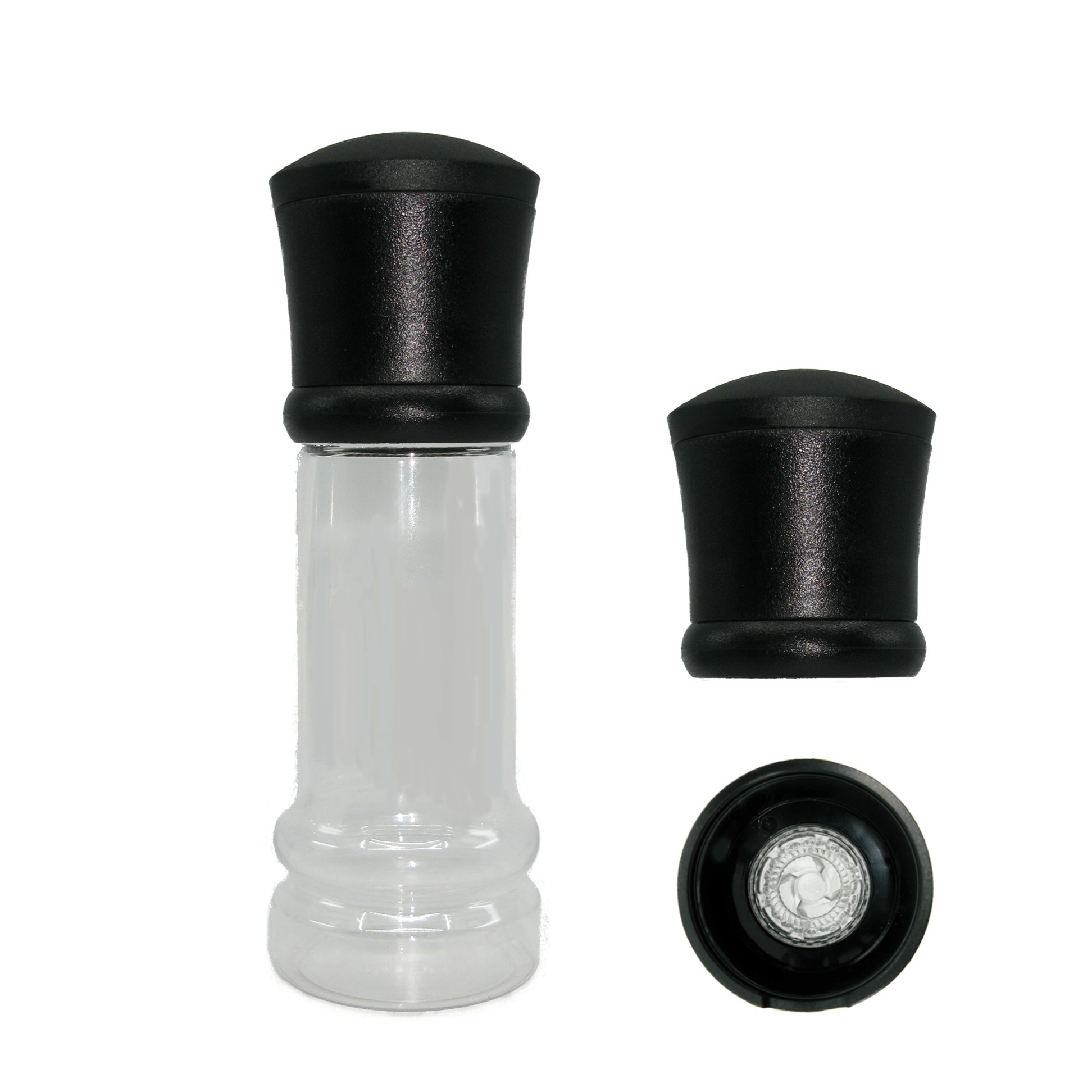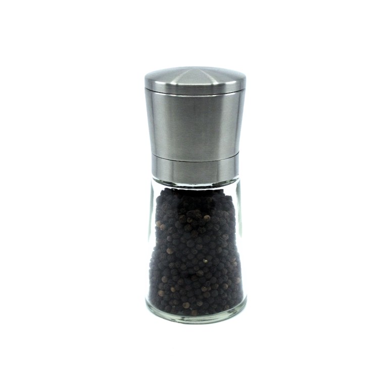 – Stainless steel top glass body spice grinder;