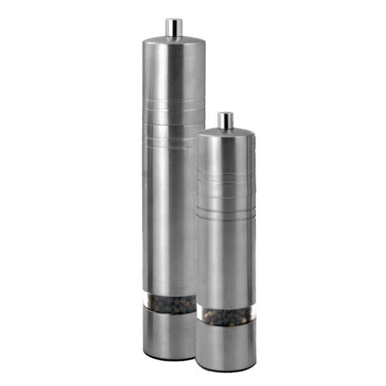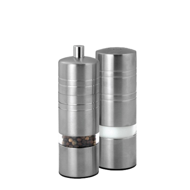 – stainless steel round cylindrical shape peppermill & salt shaker set;
