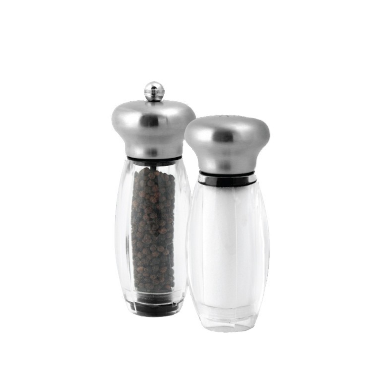 16cm tall stainless steel top & acrylic body peppermill salt shaker set of 2