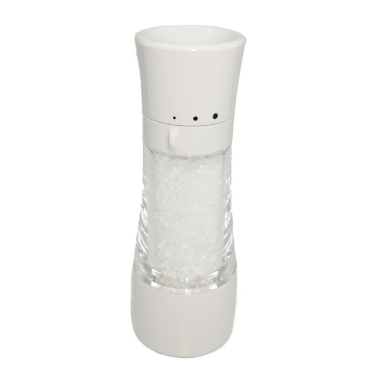 – white color plastic body and grind select adjustment ring for salt mill;