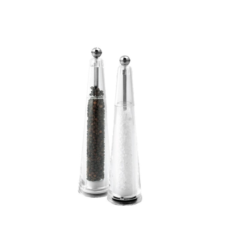 – 21cm tall acrylic peppermill & salt mill set;