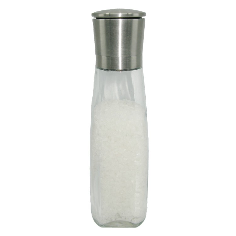 – Stainless steel top glass body pepper/salt/spice grinder;