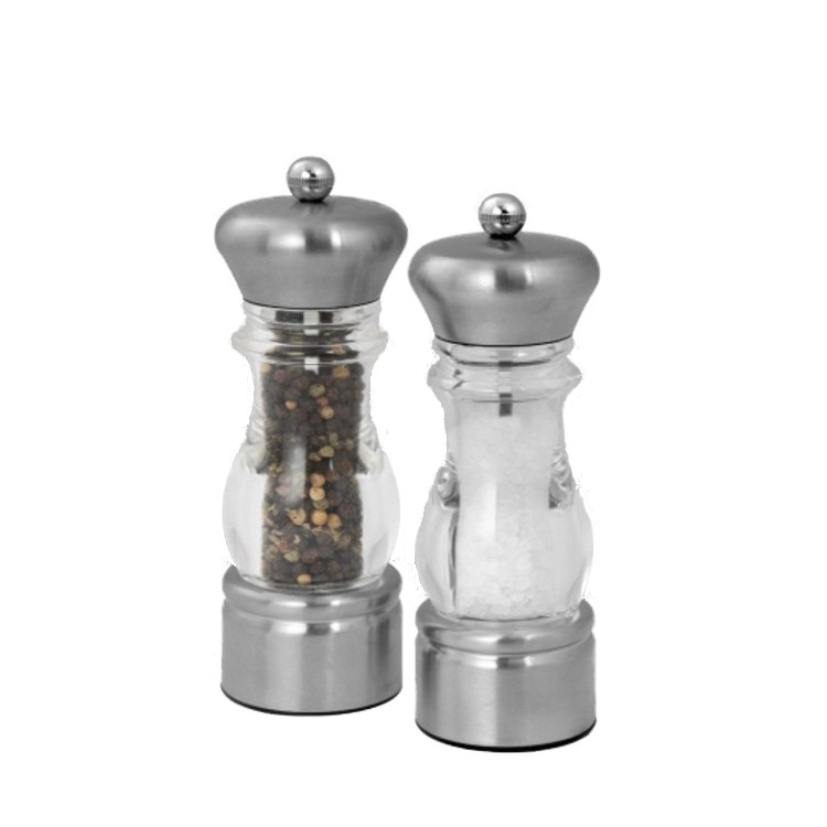 – FION Stainless Steel Top & Bottom Acrylic Body Peppermill / Salt Mill / Shaker / Set of 2;
