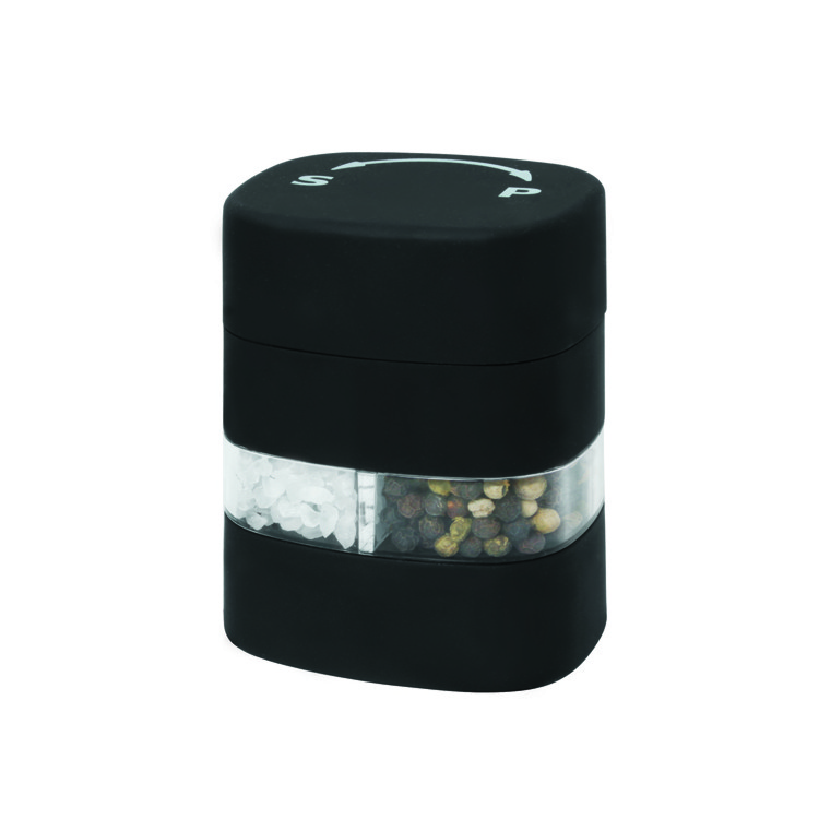 – space saving design combines salt and pepper into one grinder; rotate one direction for salt and the other direction for pepper;