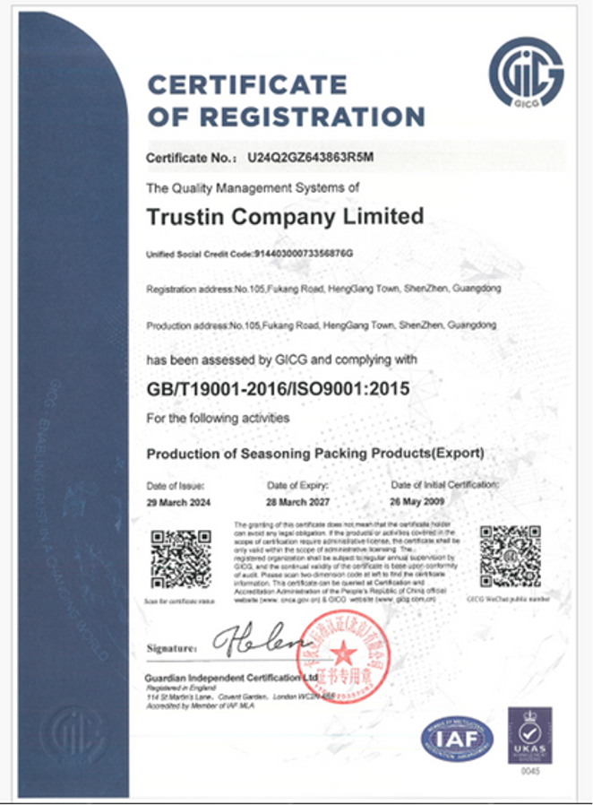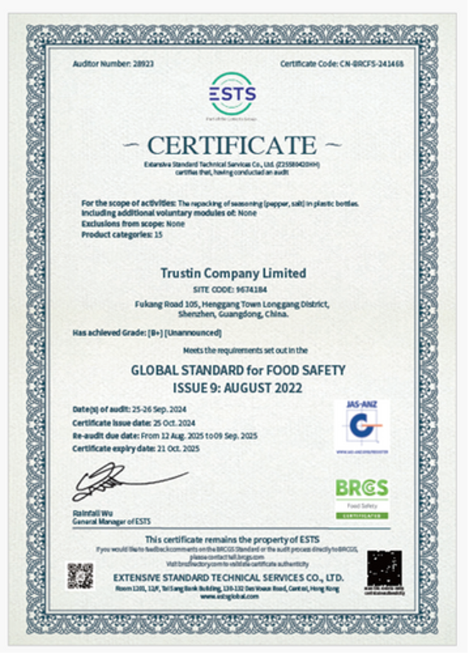 We earned ISO 9001 accreditation back in June 2001, a milestone that has driven continuous optimization of our production workflows, process control mechanisms, and quality management systems. To further uphold our promise of excellence, we have also obtained a comprehensive range of global food safety and social compliance certifications, including BSCI, GSV/C-TPAT, ISO22000, BRC, and FSMA. Our dual focus on technical expertise and regulatory compliance ensures that we deliver reliable, high-quality pepper grinders for markets worldwide.